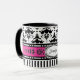 Elegant retro damask and stripes in black and white with a hot pink band across the middle. Add your own name.
