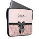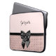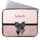 Chic Parisian Pink Polka Dots Black Bow and Name Laptop Sleeve