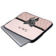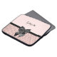 A chic pale Parisian pink and black polka dot 15'' laptop sleeve with a girly black ribbon tied into a cute bow. Personalise this feminine light pink French inspired design by adding your name. Flat printed image, not actual bow.