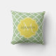 Chic Pastel Green Quatrefoil Yellow Name Monogram Cushion