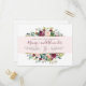 Chic floral wedding invitation featuring blush and burgundy watercolor flowers with lush botanical foliage at the top and bottom with gold against a pastel pink stripe. Perfect for spring or summer garden themed weddings.