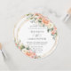 This chic wedding invitation features a circle gold glitter frame adorned by beautiful watercolor peach, ivory, pink floral and green foliage bouquets. Personalise it with your details easily and quickly, simply press the customise it button to further re-arrange and format the style and placement of the text. (c) The Happy Cat Studio