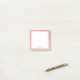 Capture your ideas in style with this chic post-it note pad, featuring a stunning abstract border design in peach, pink, and lilac hues, accentuated by soft brushstrokes. The captivating colour blend exudes elegance and sophistication, perfect for sparking creativity. Personalise it with your name for a touch of individuality. Whether jotting down thoughts or sketching out dreams, this post-it note pad is the perfect companion for your moments of inspiration.