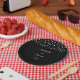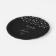 Chic silver grey pearls and white calligraphy on black background Wedding Paper Plate.