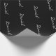 Chic black and white wrapping paper with personalizable name. Beautiful giftwrap for fancy Birthday, Christmas, wedding, bridal shower, anniversary and other important occasions. Stylish script typography letters. Elegant pattern design for men, women and kids. Available in matte and glossy finish. DIY xmas accessories and supplies for the Holidays. Custom colour background. Surprise your mum, dad, uncle, son, daughter, sister, brother etc.