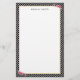 Chic Personalised Name Black Stripes Pink Flowers Stationery