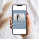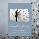Chic dusty blue elopement and private wedding announcement and post-wedding reception invitation featuring your photo is in a "Mr & Mrs" frame, "Celebrate With Us" in a modern white script and your names, wedding date and location in simple white typography. On the back, personalise your wedding or elopement announcement and reception invitation, and add your married names in a signature-like white script.