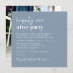 Chic dusty blue square wedding reception invitation featuring "Happily Ever After Party" in a contemporary white script and bold minimal modern white lettering, your personalised invitation and your names in a signature-like script. The back features your photo overlayed with your names and date(s) joined together by a heart (if your wedding and reception dates are different, keep your first names on the top line and your two dates separated by the heart on a second line).