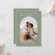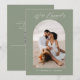 Invite your guests online with a QR code that sends them directly to your wedding website. This contemporary photo design in sage green with the phrase "We're Engaged" in a modern handwritten calligraphy script is a perfect announcement card. Easily insert your photo, names, and wedding website URL to make it your own.
