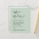 Budget-friendly sage green elopement or private wedding announcement and wedding reception invitation featuring "Happily Ever After Party" in a chic modern script, your invitation in classic serif typography and your names in a signature-like script. On the back, upload your photo and input your wedding website address to create a QR code that your guests can scan to RSVP online and obtain additional details.