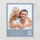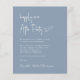 Budget-friendly dusty blue wedding reception invitation featuring "Happily Ever After Party" in a chic white script, your invitation in classic white serif typography and your names in a signature-like script. On the back, upload your photo and input your wedding website address to create a QR code that your guests can scan to RSVP online and obtain additional details.