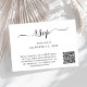Chic wedding RSVP card that features "rsvp" in an elegant calligraphy script with swashes. Input your wedding website address to create a QR code for your guests to scan to RSVP online. The back features your photo overlayed with your first names and wedding date joined together with a heart.