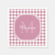 Chic Pink and White Checked Monogrammed Name Napkin