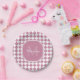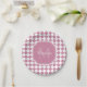 Chic Pink and White Checked Monogrammed Name Paper Plate