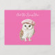 Chic Pink Beret Brown White Owl Be Seeing You Postcard