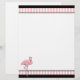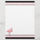 Chic white letterhead stationery, with graphics of a pink and white striped header and footer, with black borders. Graphics of a pretty pink flamingo decorates the bottom left corner of the letterhead. Customise to add your own text.