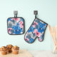 Chic Pink Blue Floral Bridal Shower Oven Mitt & Pot Holder Set