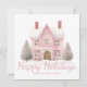 Chic Pink Christmas House Trendy New Home Address Holiday Card