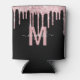 Chic Pink Dripping Glitter Monogram Name Can Cooler