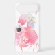 Pretty iPhone 6 case, with a watercolor print of a pink flamingo, with colourful flowers and feathers, decorating it's head. Personalise the coral pink text, for yourself or as a great gift to her.