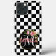 Chic pink floral chequered black & white monogram Case-Mate iPhone case