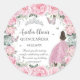 Chic Pink Floral Princess Silver Quinceañera XV Classic Round Sticker