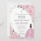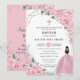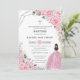 Chic Pink Floral Silver Girl Baptism Christening Invitation