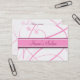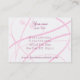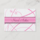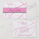 This customisable business card has pink swirls and flowers with your business name on the front, and your personal information on the back. The paper stock selected is the basic white, changing it to another type may alter the white colour background.
