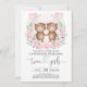 Chic Pink Floral Teddy Bear Twin Girls Baby Shower Invitation