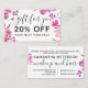 Floral watercolor gift discount card and a modern typography, with hand painted pink flowers with green and brown leaf and branches in a botanical bouquet arrangement. An elegant script calligraphy,