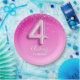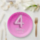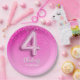 Chic Pink Glitter Balloon 4th Birthday Party Paper Plate