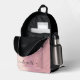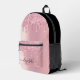 Chic girly backpack featuring pink faux glitter drips and your name in a trendy script with swashes on the front pocket.