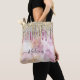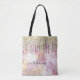 Chic pink gold glitter drips monogram Tote Bag. Beautiful, modern and cool for the trend-savvy and art-loving hip trendsetter. This stylish design would be great for girls who enjoy classy sparkly designs. Add your name and monogram it with a cool and modern calligraphy typography. This makes the perfect sweet 16 birthday, wedding, bridal shower, anniversary, baby shower or bachelorette party gift for someone that loves glam luxury and chic styles. Whether for valentines day, Christmas or any occasion in general this cute tote bag will make a great gift idea for any woman who loves modern sparkly elegance. PLEASE NOTE: These are flat printed graphics - no real glitter, jewels or raised parts.