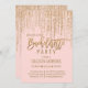 Chic Pink Gold Glitter Fringe Curtain Bachelorette Invitation