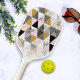 Play in style with this cool pickleball paddle featuring a pink, gold, black and grey geometric triangle pattern. Add your custom text to personalise the paddle - monogram, name, phone number, etc - or delete and just have the pattern. The perfect pickleball paddle for moms, grandmas, teens, beginners and experienced players alike - everyone will have fun playing with this unique, stylish paddle.