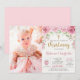 Chic Pink Gold Watercolor Floral Roses Christening Invitation