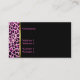 Fashionable business card done in a pink and black spotted jaguar pattern, with a pink and gold band, across the middle front. The back is done in black, with the jaguar print, on the left side edged with gold. Black and pink text, on the front and back, is ready to personalise to your needs. Lovely stand out card that packs a stunning first impression.