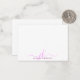 Personalised modern, minimalist note card with simple, elegant handwritten calligraphy script initials or monogram and name in vibrant pink and magenta colours. CHANGES: The text font style, colour, size and placement can be changed by clicking on EDIT under the PERSONALIZE section for a custom look. ASSISTANCE: For help with design modification or personalisation, colour change, resizing, transferring the design to another product or if you would like coordinating items, contact the designer BEFORE ORDERING via the Zazzle Chat MESSAGE tab below or email makeitaboutyoustore@gmail.com.