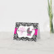 Chic Pink Polka Dot Damask Baby Shower Thank You Card