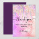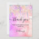 Chic pink purple unicorn dripping glitter monogram thank you card. Shimmering cute glittery Christmas card. Perfect for sending out to family or friends for the holiday season, birthdays or any other occasion. To make it extra special it is embellished with beautiful faux glitter. This design can also be transferred onto any product on zazzle. You can personalise it with your own text and information.