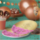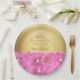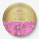Chic Pink Rose Floral Gold Crown Quinceañera Paper Plate