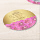 Chic Pink Rose Floral Gold Crown Quinceañera Round Paper Coaster