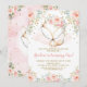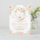 Chic Pink Rose Girl Fox Baby 1st Birthday Woodland Invitation