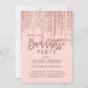 Chic Pink Rose Gold Glitter Fringe Bachelorette Invitation