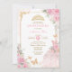 The perfect invitation for your daughter's quinceañera is finally here! This chic and lovely quinceañera invitation features elegant watercolor pink roses, a sparkly blush princess dress, a gold glitter tiara and three fluttering butterflies. Click the "customise further" button if you wish to re-arrange and format the style and placement of the text.
