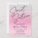 A modern pink and silver sweet 16 invitation featuring a faux glitter background and sparkle lights.