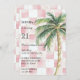 Chic Pink Squares Gold Palm Tree birthday Invitation
