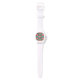 A chic, Sporty White Wristwatch, with a pattern of pink Water Lilies and blue Dragonflies, from a hand-painted paper collage by Judy Adamson. Excellent gift for someone with a July birthday; part of the Posh & Painterly 'Lily Pond' collection.