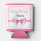 Chic Pink Watercolor Bow Sweet 16 Birthday Can Cooler