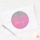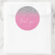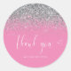Chic Pink White Silver Glitter Thank You Classic Round Sticker